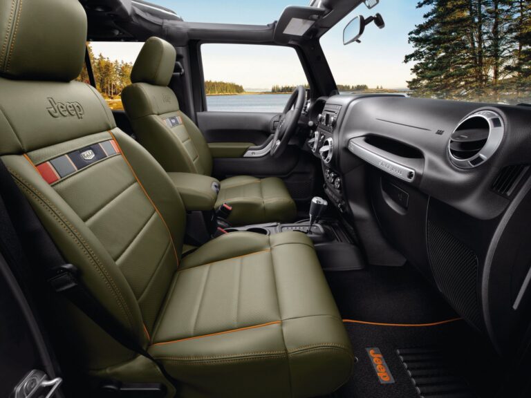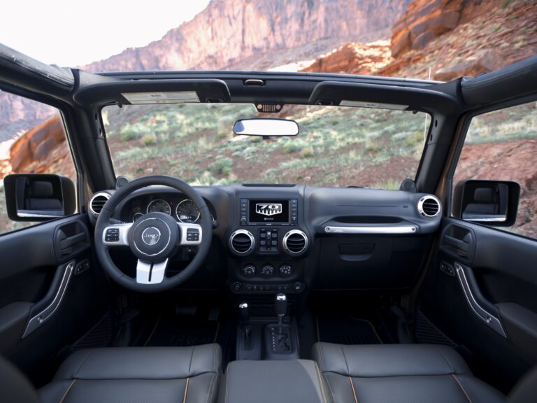 Kabina, która została odświeżona w 2010 roku na rok modelowy 2011, miała nowe siedzenia, panele drzwiowe oraz nową deskę rozdzielczą. To był zupełnie inny pojazd, wyposażony w grubsze i lepiej izolujące akustycznie elementy. W rezultacie kabina była cichsza, zwłaszcza przy zamontowanym sztywnym dachu. Przed kierowcą znajdował się zestaw wskaźników z dużymi tarczami prędkościomierza i obrotomierza, z wskaźnikami poziomu paliwa i temperatury po bokach. Wszystkie były otoczone chromowanymi obramowaniami. Na szczycie centralnej konsoli Jeep umieścił system multimedialny Uconnect, opracowany wspólnie z Fiatem. Oferował nawigację i ekran dotykowy, mógł łączyć się z telefonami przez Bluetooth, a kierowca mógł korzystać z przycisków na kierownicy, aby odbierać lub kończyć połączenia, wybierać stacje muzyczne i uzyskiwać inne dane z komputera pokładowego.