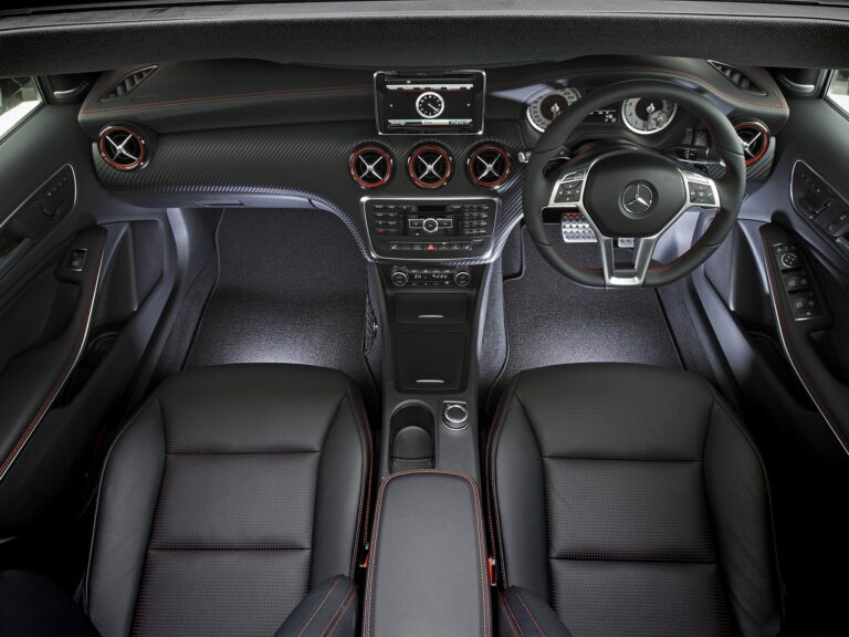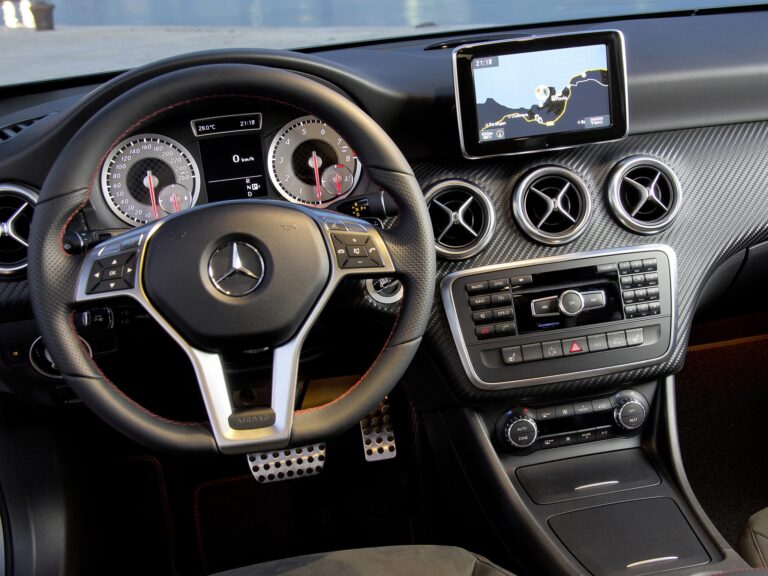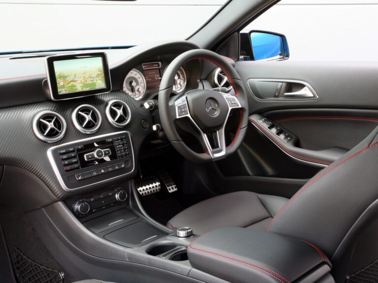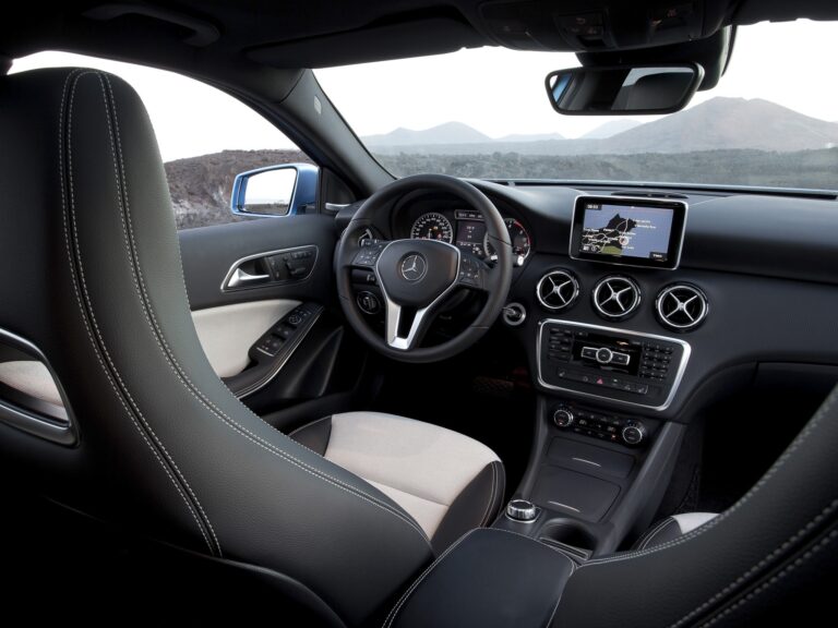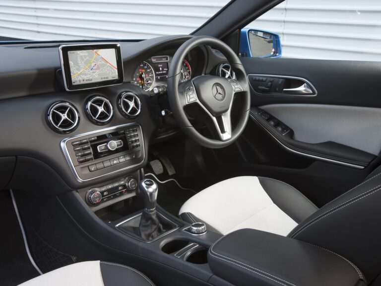 W środku, model A z 2012 roku oferował parę kubełkowych foteli z przodu oraz dzieloną kanapę z tyłu, która mogła zwiększyć przestrzeń bagażową. Deska rozdzielcza była starannie zaprojektowana i miała okrągłe wloty powietrza oraz ekran umieszczony na szczycie centralnej konsoli. W obrębie zestawu wskaźników Mercedes-Benz umieścił dwie duże tarcze dla obrotomierza i prędkościomierza, dwa wskaźniki dla temperatury wody i poziomu paliwa, a także wyświetlacz LCD dla informacji z komputera pokładowego. Pojazdy wyposażone w automatyczną skrzynię biegów miały dedykowaną konsolę dla funkcji PRND za kierownicą. Z kolei modele z manualnymi skrzynkami biegów miały dźwignię zmiany biegów umieszczoną na konsoli środkowej.