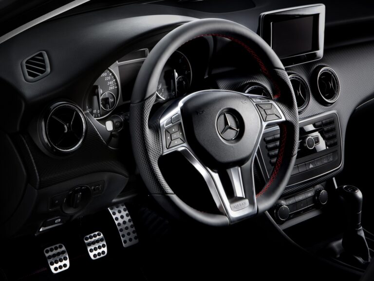 „Inspiracja z designu samolotów kontynuowana jest w klasie A”, wyjaśnia projektant Jan Kaul. „Deska rozdzielcza jest wyraźnie podzielona na górną część inspirowaną profilem skrzydła i muskularną dolną sekcję. Tworzy to wrażenie, że górna sekcja jest wspierana przez mięśnie.”