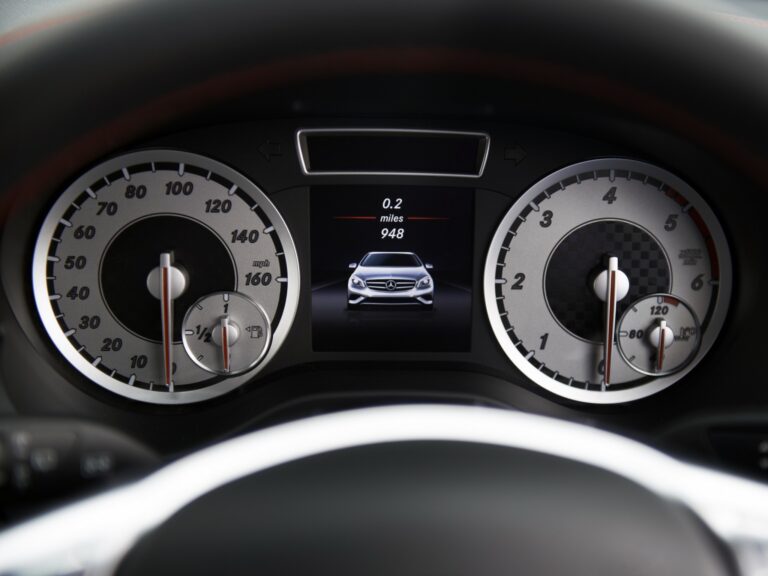 Zestaw wskaźników składa się z dwóch dużych okrągłych instrumentów, z których każdy ma małą tarczę osadzoną w środku. Gdy jest w stanie spoczynku, igły tarcz stoją na godzinie 6. Wskaźniki mają białą obudowę, chociaż w sportowych liniach designu i wyposażenia takich jak Urban i AMG Sport są one w kolorze czerwonym. Tarczki w sportowych liniach i pakietach są w kolorze srebrnym z efektem szachownicy. Trójramienna kierownica wyposażona jest w 12 przycisków funkcyjnych i elektroplatowane wykończenie.