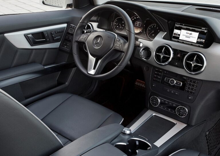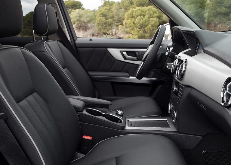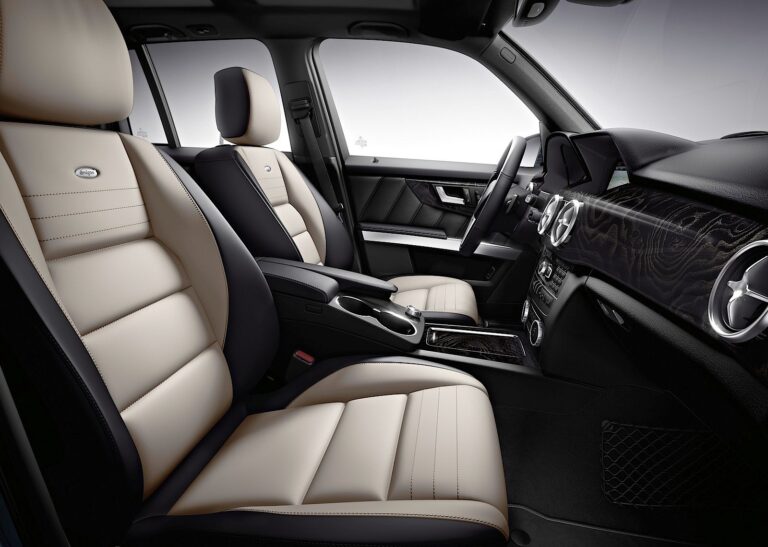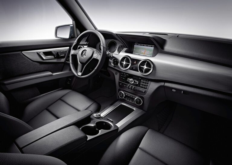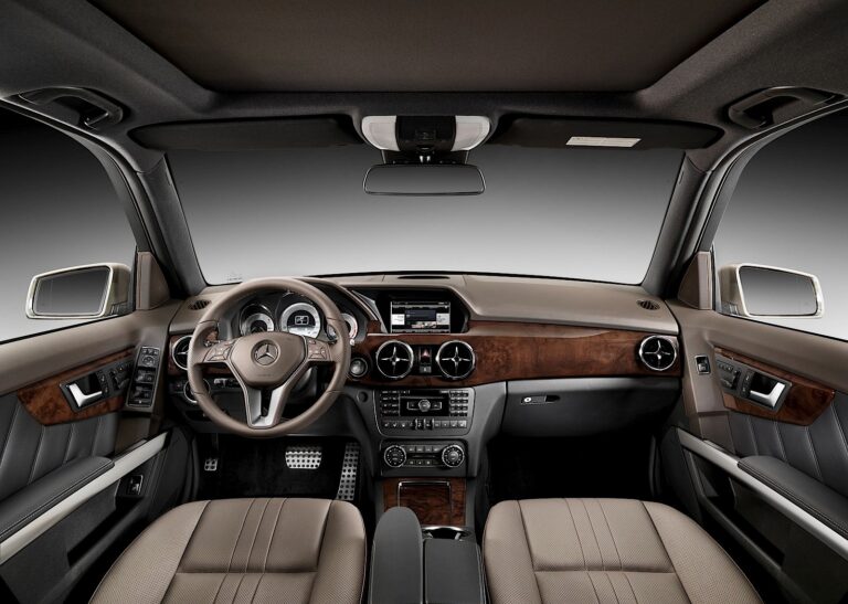 Projektanci w Centrum Kompetencji Wnętrz przeprowadzili gruntowną modernizację deski rozdzielczej: szeroki element wykończeniowy z aluminium lub opcjonalnie z drewna rozciąga się na całą szerokość deski. Nowe okrągłe wloty powietrza oraz dodatkowe elementy wykończenia w srebrnym kolorze również przyciągają wzrok. Wysokiej jakości kolorowy wyświetlacz jest opcjonalnie dostępny dla zestawu wskaźników. Trójramienne sportowe koło kierownicy, nowe kolory tapicerki i wzory siedzeń oraz pośrednie oświetlenie ambientowe z technologią włókien LED, które po raz pierwszy wprowadzono w GLK, dodatkowo podnoszą atmosferę dobrego samopoczucia wewnątrz pojazdu. Modele z automatyczną skrzynią biegów 7G-TRONIC są wyposażone w dźwignię DIRECT SELECT w ergonomicznie wygodnej pozycji na rurze kierownicy. Umożliwia to zwolnienie miejsca w konsoli centralnej na schowek, który jest wykończony precyzyjnie w srebrnym kolorze i może być zamykany za pomocą chowanej pokrywy.