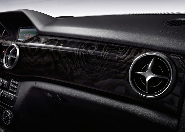 Projektanci w Centrum Kompetencji Wnętrz przeprowadzili gruntowną modernizację deski rozdzielczej. Szeroki element wykończeniowy z aluminium lub opcjonalnie z drewna rozciąga się na całą szerokość deski. Nowe okrągłe wloty powietrza oraz dodatkowe elementy wykończenia w srebrnym kolorze również przyciągają wzrok. W instrumentach dostępny jest opcjonalnie wyświetlacz kolorowy wysokiej jakości. Trójramienne sportowe koło kierownicy, nowe kolory tapicerki i wzory siedzeń oraz pośrednie oświetlenie ambientowe z technologią włókien LED, które dostępne jest po raz pierwszy w GLK, dodatkowo poprawiają atmosferę wewnątrz pojazdu.