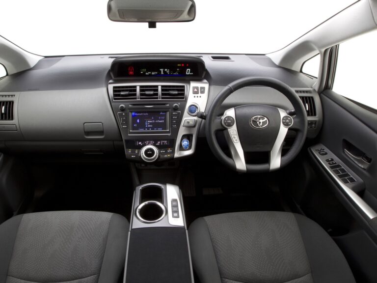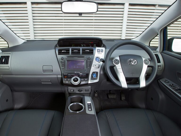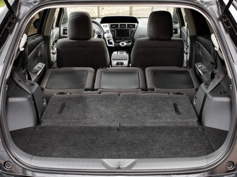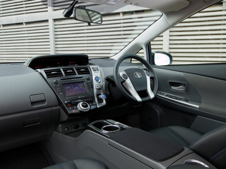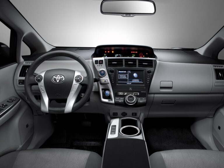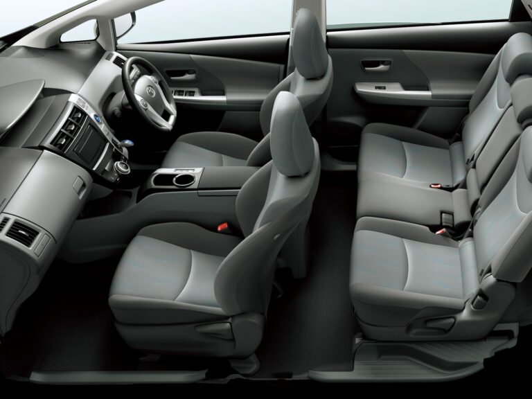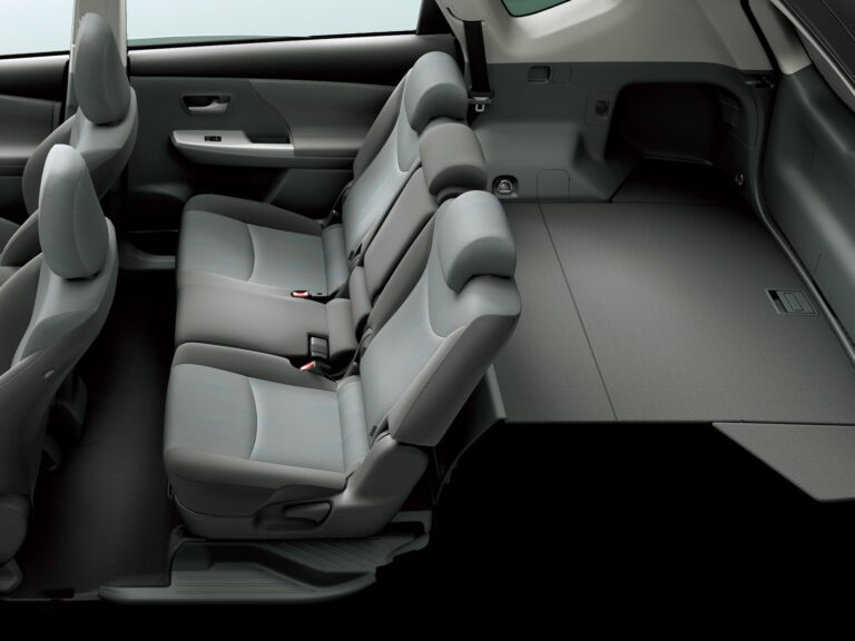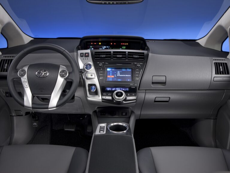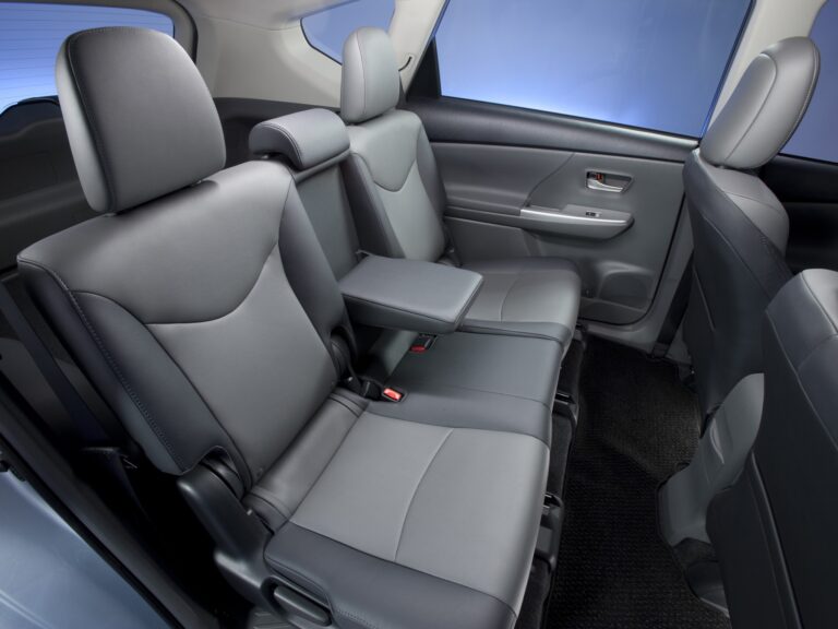 Wewnątrz Toyota Prius V kładzie nacisk na proporcje, przestronność i elastyczność dla aktywnych rodzin. Wygodne wnętrze i dobre widoczność zapewniają wysokie siedzenie, dużo przestrzeni na głowę oraz imponującą odległość wynoszącą 38 cali, co zapewnia hojność miejsca na nogi z tyłu. Niska, szeroko otwierająca się tylna klapa odsłania 34,3 stopy sześcienne przestrzeni bagażowej za tylnymi siedzeniami, co czyni go najprzestronniejszym dedykowanym pojazdem hybrydowym na rynku i lepszym niż niektóre kompaktowe SUV-y.
