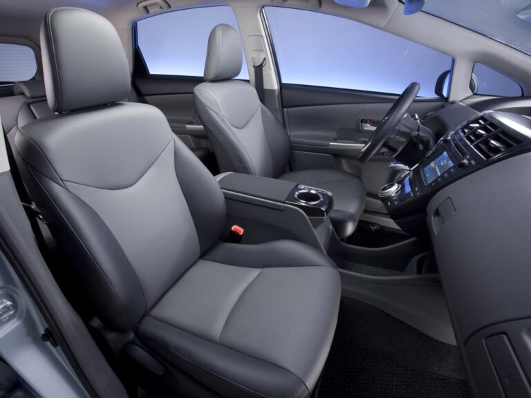 Dla zapewnienia wysokiego poziomu bezpieczeństwa, Prius V ma siedem poduszek powietrznych, kabinę o wysokiej wytrzymałości oraz konstrukcję nadwozia absorbującą energię z belkami ochronnymi, wspornikami i poduszkami na nogi. Nowy projekt foteli kierowcy i pasażera z przodu pomaga zredukować możliwości urazów szyi podczas kolizji.