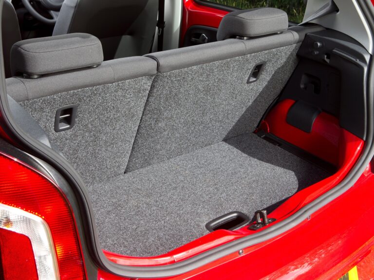 Oczywiście cztery drzwi zmieniły wygląd bocznego profilu samochodu. Podczas gdy dolna linia okna w modelu dwudrzwiowym unosi się ku tyłowi w pobliżu słupków C, w wersji czterodrzwiowej tworzy prostą linię. Dzięki temu nowa wersja nadwozia zyskuje wysoki poziom niezależności. Również zwięzłe i krótkie zwisy nadwozia są charakterystyczne dla wersji czterodrzwiowej. Przednia i tylna część nadwozia są identyczne w obu wersjach. Oznacza to, że nabywcy wersji czterodrzwiowej będą mogli cieszyć się klapą bagażnika, której zewnętrzna część składa się z ciągłej tafli szkła; nadaje to klapie bagażnika nowoczesny i elegancki wygląd, przypominający smartfona. Pod klapą znajduje się bagażnik o pojemności 251 litrów; po złożeniu tylnego oparcia (60:40 z modelu move up!) można go powiększyć do 951 litrów.