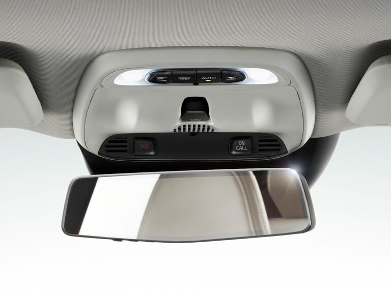 Opcjonalny panoramiczny szklany dach poprawia „wrażenie dużego samochodu” w kabinie. Kolejnym nietypowym i stylowym akcentem designu jest lusterko wsteczne bezramkowe – kolejny dowód na fokus projektowy Volvo V40 oraz klarowne, uporządkowane detale.