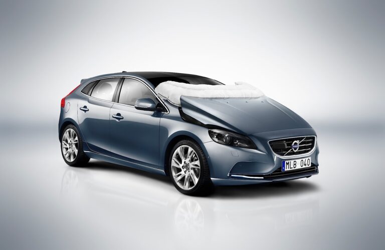Nowa Poduszka Powietrzna dla Pieszych, która zadebiutuje na świecie w Volvo V40, wypełnia się z dolnej krawędzi maski, gdy pojazd wykryje, że uderzył w pieszego. Uniesiona maska lepiej amortyzuje niefortunne zdarzenie, a poduszka chroni także głowę pieszego przed twardymi punktami w dolnej części szyby i słupkach A.