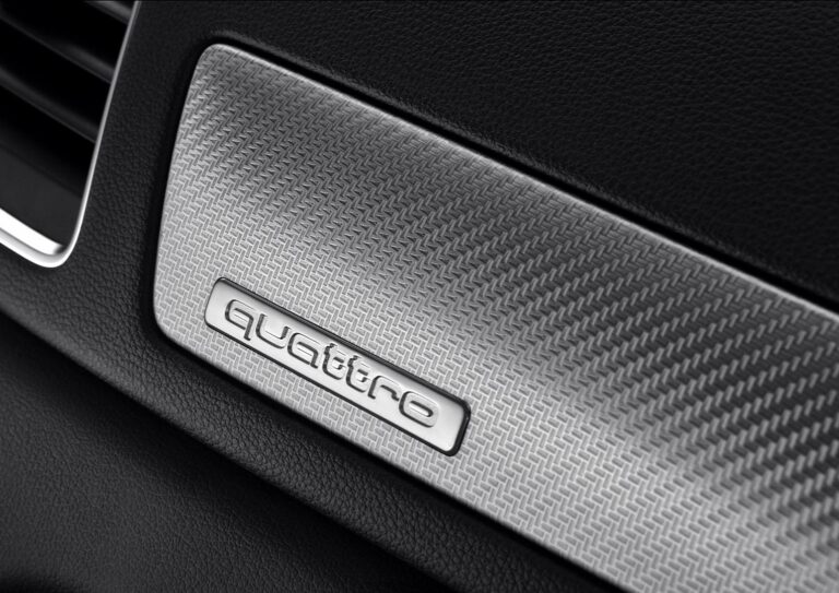 Oprócz pedałów, również podparcie stopy błyszczy w wyglądzie aluminium, a standardowe wkłady mają czarny połysk fortepianowy. quattro GmbH oferuje również aluminium wyścigowe lub węglowe jako alternatywy. Czarny sufit jest standardem, a sufit w kolorze srebrnym księżyca jest opcjonalny.