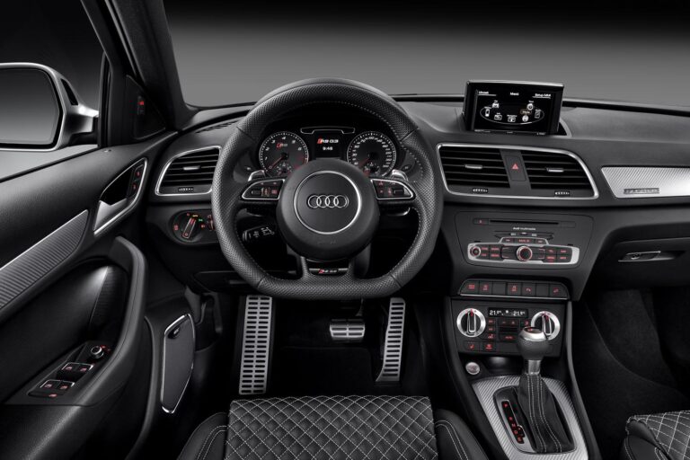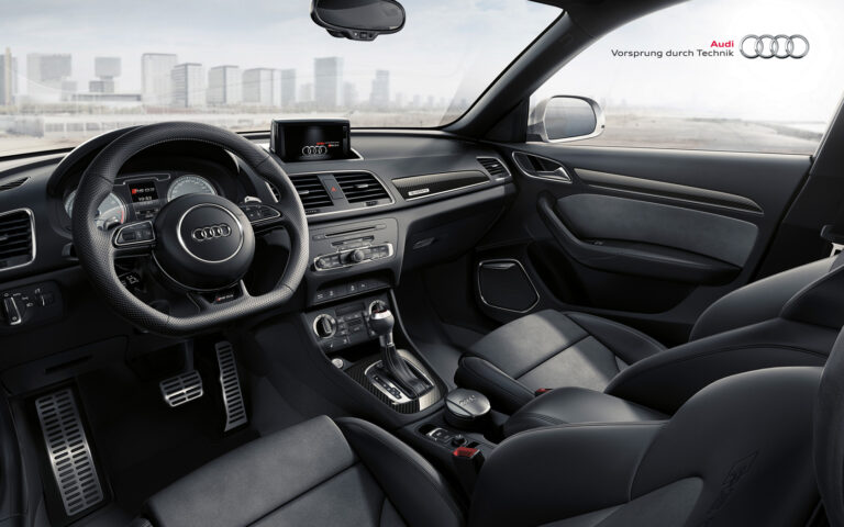 Wnętrze chwaliło się wysokimi fotelami kubełkowymi i kierownicą z płaskim dnem, co świadczyło o tym, że RS Q3 to nie tylko dobry wybór na rodzinne wyjazdy. Dodatkowo system infotainment (MMI) oferował więcej ustawień i funkcji niż inne modele Audi. Dzięki pikowanej skórze z Alcantarą, klienci mogli cieszyć się zarówno luksusowym, jak i sportowym doświadczeniem.