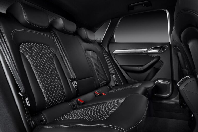 Sportowe siedzenia z wytłoczonym logo RS Q3 są również standardem i są obite czarnym Alcantarą/skórą. Klienci mogą również wybrać opcjonalną skórę Fine Nappa w kolorze czarnym lub srebrnym księżyca z kontrastowymi przeszyciami w kolorze kamienia szarego lub pakiet projektowy z pikowaniem w diamenty.