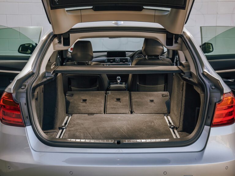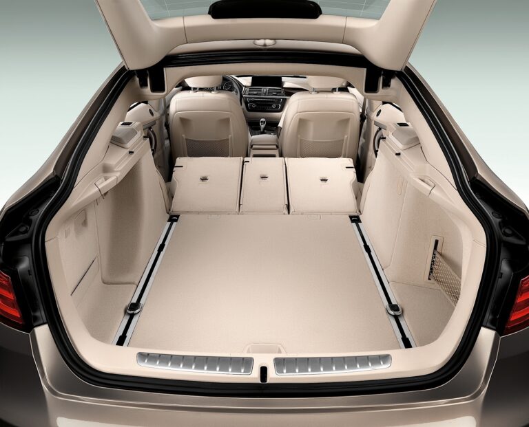 Liczne schowki i inne praktyczne detale przyczyniają się do odpowiedniego luksusowego poziomu komfortu podczas długich podróży. Dwie kieszenie na kubki są zamontowane w konsoli centralnej, ale w razie potrzeby można je zamienić na tackę na drobiazgi. Duże kieszenie w drzwiach z przodu i z tyłu mogą pomieścić butelki o pojemności do jednego litra (0,75 l z tyłu). BMW 3-Series Gran Turismo można precyzyjnie dostosować do zmieniających się potrzeb. W tym celu siedzenia tylne są wyposażone w składane zagłówki i mogą być dzielone w proporcji 40:20:40 w standardzie, co pozwala na stopniowe zwiększenie przestrzeni ładunkowej z 520 do 1600 litrów. Składanie tylko środkowego segmentu tworzy dużą przestrzeń ładunkową, co umożliwia przewożenie kilku par nart lub snowboardów dla czterech osób. Składając wszystkie oparcia, uzyskujemy nieco wznoszącą się, prawie poziomą i zlicowaną podłogę ładunkową.