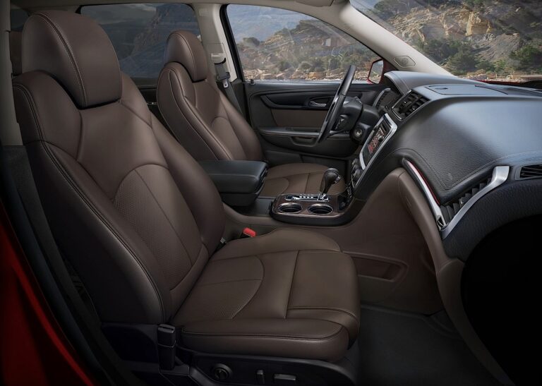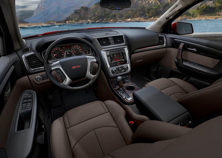 Wewnątrz kierowcy mogli zabrać ze sobą do siedmiu pasażerów, ponieważ Acadia była pojazdem z trzema rzędami siedzeń. W zależności od opcji, producent mógł również zaoferować samochód z sześcioma indywidualnymi fotelami, co zapewniało większy komfort wszystkim podróżującym. Deska rozdzielcza miała prosty, ale skuteczny układ, z czytelnie uporządkowanym zestawem wskaźników, w którym zegar zajmował centralne miejsce, doskonałe do codziennych dojazdów. Dostępny był również wyświetlacz przezierny. Na środkowej konsoli GMC dodał system infotainment z ekranem dotykowym oraz kamerą tylnej wstecznej.
