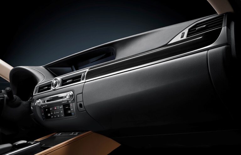 Pakiet Lexus GS 350 F Sport będzie dostępny w dwóch nowych kolorach: Riviera Red i Liquid Platinum, a także w kolorach Starfire Pearl, Nebula Gray Pearl oraz Obsidian. Pojazdy w kolorze Riviera Red będą korzystać z dodatku szklanych drobinek w powłoce, co zwiększa poziom blasku lakieru. Inżynierowie Lexusa opracowali nowy, zaawansowany proces powlekania dla wykończeń Liquid Platinum. GS 350 będzie pierwszym modelem Lexusa, który zastosuje tę nową technologię powlekania. Pojazdy z wykończeniem Liquid Platinum będą wyglądać bardziej promiennie, ponieważ dodatkowa tekstura metaliczna zapewnia zarówno silne cieniowanie, jak i wyraźne, ostre refleksy. Ten metaliczny efekt sprawia, że subtelne i zdefiniowane linie nadwozia stają się bardziej zauważalne, a powierzchnia wydaje się starannie wypolerowana.