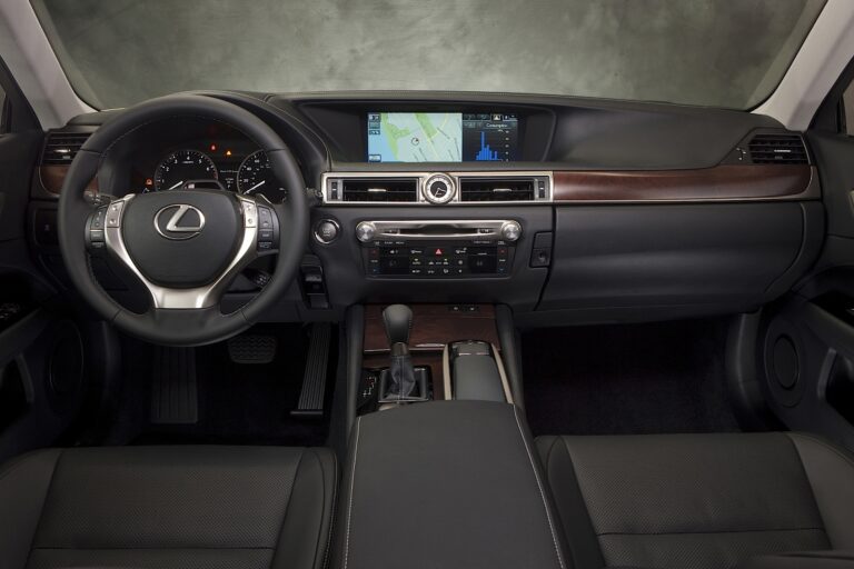 Dokładna uwaga na szczegóły została poświęcona kabinie Lexusa GS, aby stworzyć równowagę między luksusem, technologicznymi udogodnieniami a emocjonalnym projektem. Skoncentrowane na kierowcy i doświadczeniu jazdy, wnętrze zapewnia również więcej miejsca dla wszystkich pasażerów, zwiększając komfort zarówno przednich, jak i tylnych podróżnych. Nowy układ długiej, rzeźbionej deski rozdzielczej daje kierowcy i pasażerowi z przodu poczucie przestronności dzięki czystemu środkowemu panelowi i dużemu ekranowi o wysokiej rozdzielczości. Większość kontrolerów komfortu i wygody, takich jak audio i klimatyzacja, została przeniesiona, aby zapewnić czystszy i bardziej wyrafinowany układ deski rozdzielczej.