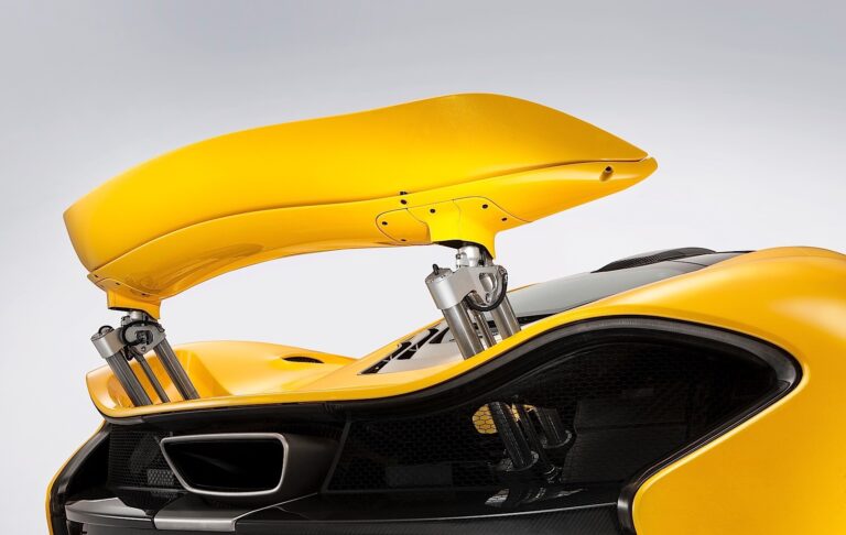 Niezwykła technologia opracowana dla McLaren P1™ obejmuje aktywną aerodynamikę i regulowane zawieszenie – obie rzeczy obecnie zakazane w Formule 1, ponieważ uznano je za dające przewagę wydajnościową. Przepływ powietrza jest optymalizowany wokół nadwozia za pomocą aktywnego skrzydła i urządzeń podpodwozia. Regulowane tylne skrzydło może wysunąć się z nadwozia o 120 mm na drodze, a do 300 mm na torze wyścigowym, maksymalizując poziom docisku aerodynamicznego. Skrzydło jest bezpośrednio inspirowane projektowaniem Formuły 1, a miejsca łączenia skrzydła tylnego podwójnego elementu i konstrukcja końcówek są identyczne jak te w mistrzowskim MP4-23 z 2008 roku.