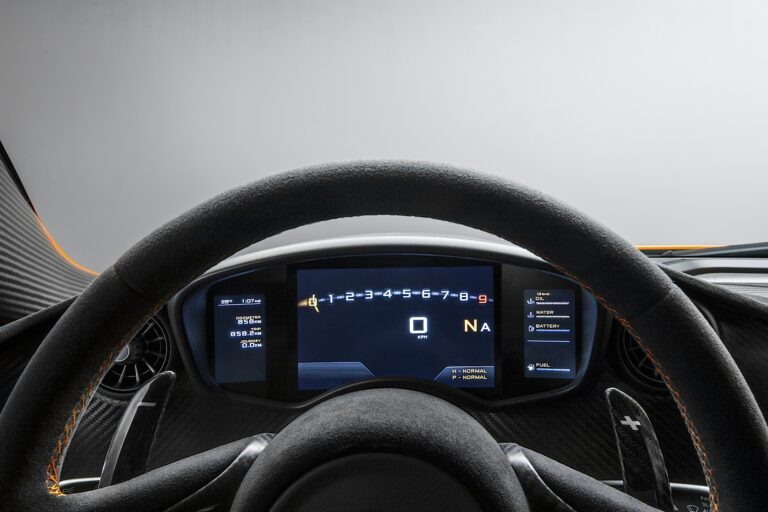 Dan Parry-Williams wyjaśnia: „Kiedy prowadzisz McLaren P1™, twoje zmysły są stymulowane. Główne punkty kontaktowe dla kierowcy zostały zoptymalizowane – poczucie kierownicy i pedałów – aby dawać największy poziom informacji zwrotnej i sprawić, że kierowca czuje się naprawdę związany z tym, co dzieje się z samochodem. A ten emocjonalny udział rośnie wraz z przechodzeniem przez różne tryby – E-mode, Normal, Sport, Track i Race – z prawdziwym crescendo dla zmysłów w trybie wyścigowym, w pełni skoncentrowanym na torze, a naprawdę czujesz się częścią samochodu.”