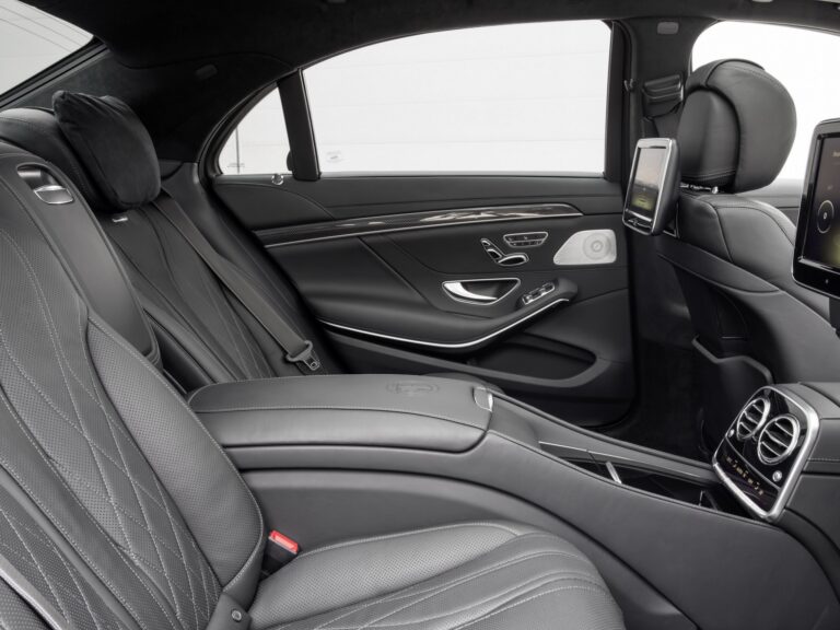 Podobnie jak zewnętrzny design, wnętrze S63 AMG to uwodzicielska kombinacja sportowej i ekskluzywnej atmosfery prawdziwego modelu AMG, klasycznych wartości Mercedesa, takich jak poprawione wymiary wnętrza, nowa logika sterowania, nowe ergonomiczne akcenty, łatwość użytkowania, bezpieczeństwo, atrakcyjność i estetyka. Nowo opracowane sportowe fotele AMG z elektryczną regulacją, funkcją pamięci oraz podgrzewaniem foteli oferują kierowcy i pasażerowi z przodu większe wsparcie boczne. Wysokiej jakości skóra nappa w stylu AMG V8 z emblematami AMG na tylnych oparciach siedzeń tworzy wykwintną i luksusową atmosferę na pokładzie. Szczególne detale to wytłoczone logo na podłokietniku centralnej konsoli oraz wysokiej jakości analogowy zegar w ekskluzywnym designie IWC, który po raz pierwszy posiada trójwymiarowe, frezowane metalowe wskazówki i metalowe aplikacje na tarczy.