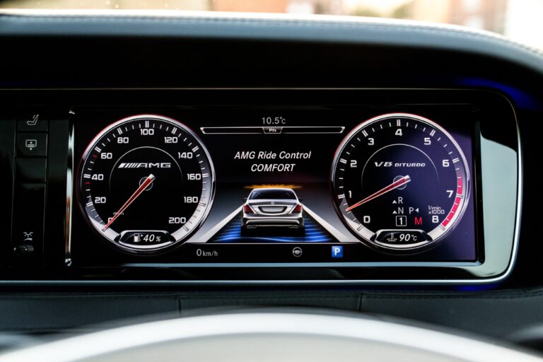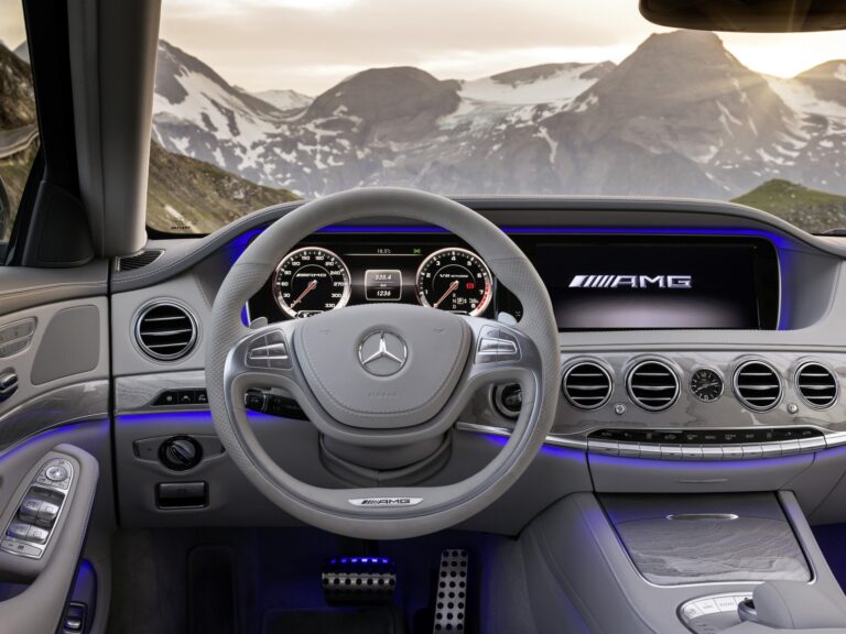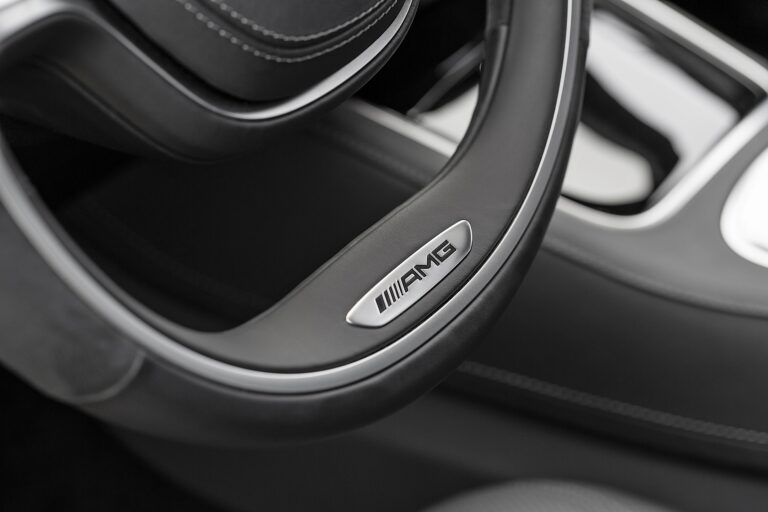 Sportowa kierownica AMG z wyraźnie formowanym pierścieniem, perforowaną skórą w strefie chwytu oraz aluminiowymi łopatkami zmiany biegów umożliwia doskonałą kontrolę nad pojazdem. Kolejną cechą, która ukazuje charakterystyczny wygląd AMG, jest wyświetlacz kolorowy TFT o wysokiej rozdzielczości jako zestaw wskaźników AMG z dwoma animowanymi okrągłymi zegarami: oprócz specyficznego dla AMG napisu i wskaźników w kolorze czerwono-srebrnym, kolejnymi cechami designu są logo AMG w prędkościomierzu z skalą do 330 km/h (po lewej) oraz napis „V8 BITURBO” w obrotomierzu (po prawej).