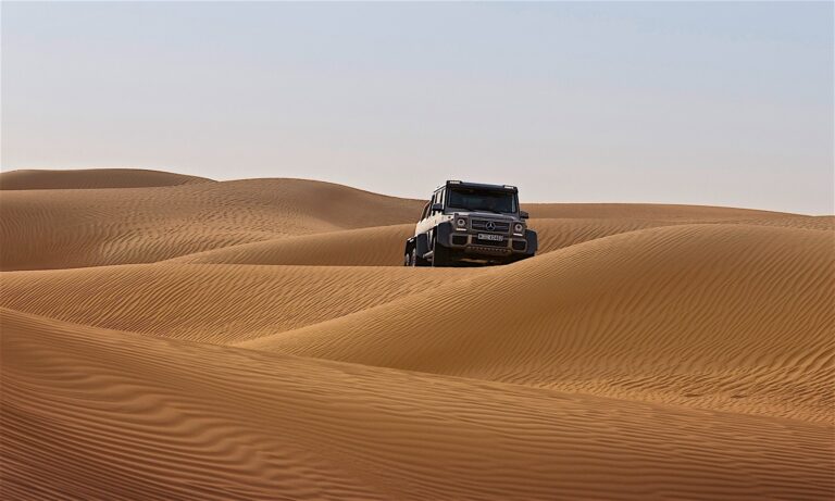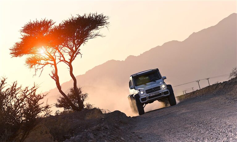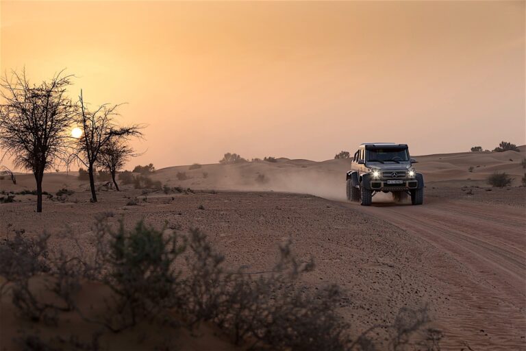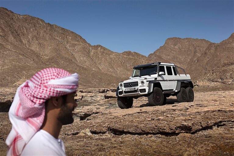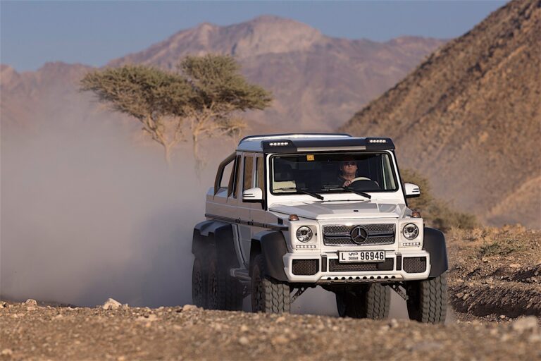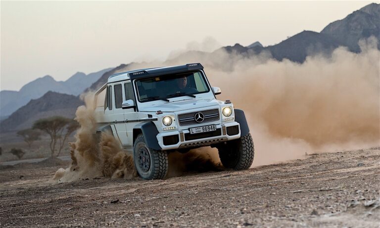 Na przestrzeni lat G-Klasa przekształciła się z prozaicznego, użytkowego pojazdu w luksusowy samochód. Nawet w 2013 roku, gdy przestała być postrzegana jako typowy produkt masowy, pod jej karoserią z ramą wciąż kryły się solidne osie. Niezależnie od wersji, wszystkie G-Klasy miały trzy blokady dyferencjałów oraz zdolność do pokonywania trudnych terenów przez cały dzień. A potem pojawił się ten pojazd: G63 AMG 6×6, który miał znacznie dłuższy szkielet i dodatkową oś z tyłu, aby podtrzymać wysoką i masywną konstrukcję. W niektórych krajach klienci musieli posiadać prawo jazdy kategorii C, aby używać go na drogach publicznych. Jednak G63 AMG 6×6 nie potrzebował dróg asfaltowych. Otwarte pustynie, równiny czy tundra byłyby dla niego znacznie bardziej odpowiednie.