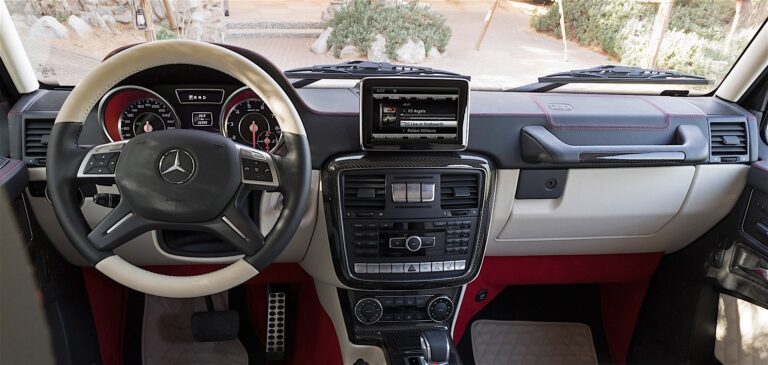 Sportowy luksus, który charakteryzuje AMG, jest główną cechą wnętrza. G63 AMG 6×6 witają swoich pasażerów ekskluzywnym klimatem klasycznej czerwonej lub jasnobrązowej skórzanej tapicerki designo z kontrastującym stębnieniem oraz atrakcyjnym pikowaniem w diamenty. Cztery indywidualnie regulowane fotele są podgrzewane i wentylowane. Tylna część wyposażona jest w specjalny środkowy konsolę, a podsufitka i słupki pokryte są materiałem Alcantara®. Tylna płyta wykończona jest skórą.