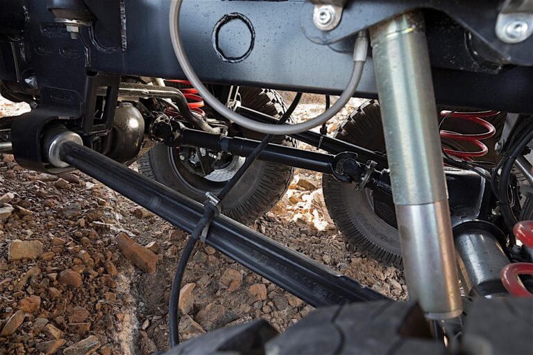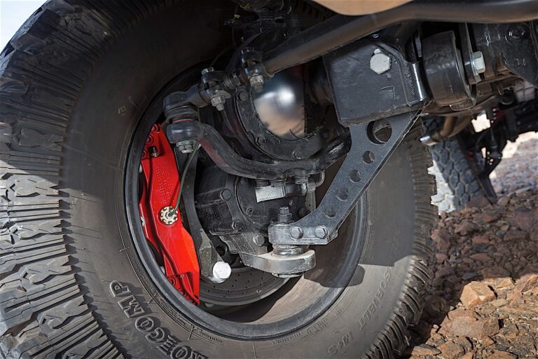Ta konstrukcja ma jeszcze bardziej istotne korzyści, eliminując potrzebę skomplikowanych adaptacji. Ponieważ położenie osi względem podwozia pozostaje niezmienione, tak samo jak punkty mocowania zawieszenia, połączenie kierownicze i położenie wałów napędowych. Dodatkowo, przekładnia portalowa niweluje ogromny obwód tocznych opon 37-calowych, dzięki czemu przełożenia, napęd prędkościomierza i czujniki ABS również pozostają niezmienione. Dodatkową zaletą redukcji stosowanej przez przekładnie portalowe jest to, że moment napędowy jest przekazywany tylko na same koła, co skutkuje zmniejszeniem obciążeń mechanicznych na układzie napędowym – szczególnie na wałach napędowych.