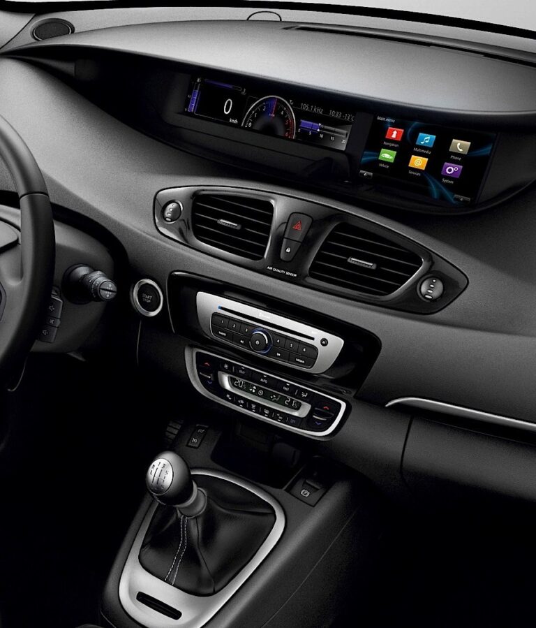Wnętrze sprawia wrażenie wysokiej jakości, co idealnie pasuje do najlepiej sprzedającego się modelu w Europie od 1996 roku. Miękkie krzywizny deski rozdzielczej obejmują teraz obszar poświęcony nawigacji i multimedia, oprócz ekranu TFT, który można dostosować do wyświetlania kluczowych informacji. R-Link debiutuje w Renault Scénic i zawiera łatwo dostępny joystick oraz wyświetlacz dotykowy umieszczony w polu widzenia kierowcy. W zależności od wersji, system audio Bose nadal oferuje najlepszą jakość akustyczną w swojej klasie.