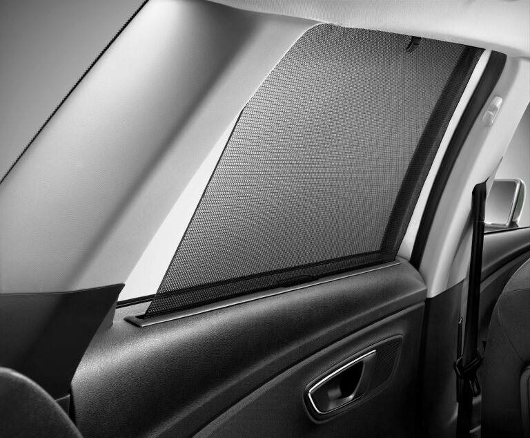 Pakiet rodzinny zawiera składane osłony przeciwsłoneczne dla tylnych drzwi i składane stoliki na tylnych oparciach foteli.