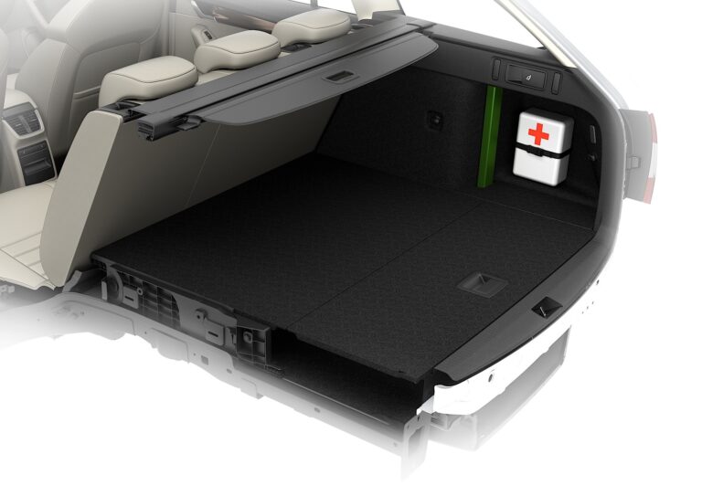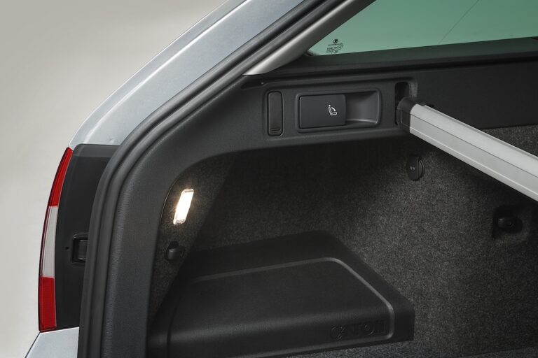 Tzw. element mocowania ładunku to nowa funkcja, która może zabezpieczyć kartony i pudełka w bagażniku. Nic nie będzie się przesuwać i gubić. Element mocujący składa się w prawym boku bagażnika, aby zaoszczędzić miejsce. W razie potrzeby można go rozłożyć i ustawić, a rzep na dole zapobiega przesuwaniu się. Przedmiot do zabezpieczenia należy po prostu włożyć pomiędzy element mocujący a ścianę bagażnika.
