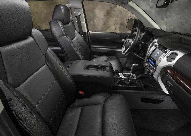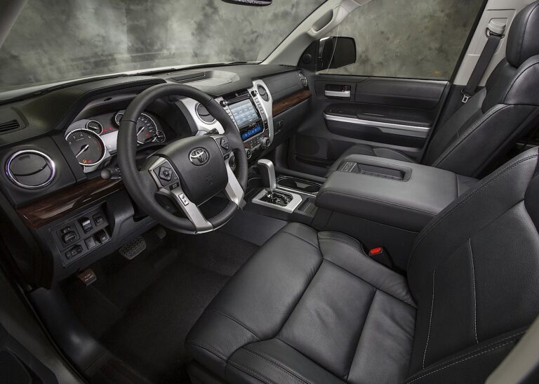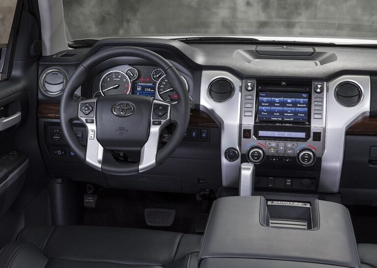 Wewnątrz, japoński producent całkowicie przeprojektował deskę rozdzielczą. Na centralnej konsoli, w zależności od wersji wyposażeniowej, Tundra Crew Cab oferowała system audio z funkcją Bluetooth, z opcją jednostki JBL, która zapewniała lepsze wrażenia słuchowe. Za szerokimi przednimi siedzeniami, Toyota zainstalowała kanapę dla trzech osób z tyłu, oferującą dużo miejsca na nogi i wysokości.