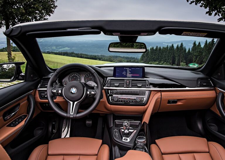 Oczywiście, BMW M4 Convertible jest również dostępne z szeroką gamą systemów wsparcia kierowcy i usług mobilności wprowadzonych pod marką BMW ConnectedDrive, z których część jest już znana z BMW M3 Sedan i BMW M4 Coupe. Do najciekawszych należy nowa generacja systemu nawigacyjnego Professional oferującego dodatkowe możliwości, ostrzejszą grafikę i elementy 3D w wyświetlaczu mapy, Driving Assistant Plus, który ostrzega kierowcę o zbliżającym się zderzeniu z pieszym lub pojazdem, inteligentny asystent oświetlenia LED High Beam Assistant, oraz system aktywnej ochrony z asystentem uwagi.