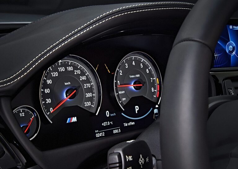 Opcjonalny wyświetlacz Head-Up oferuje dodatkowe funkcje specyficzne dla M, takie jak wyświetlacz biegów, licznik obrotów i wskaźnik optymalnej zmiany biegów.