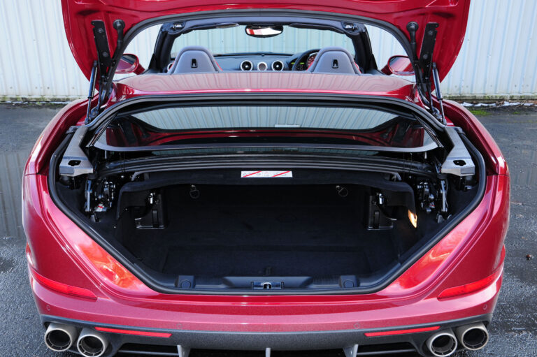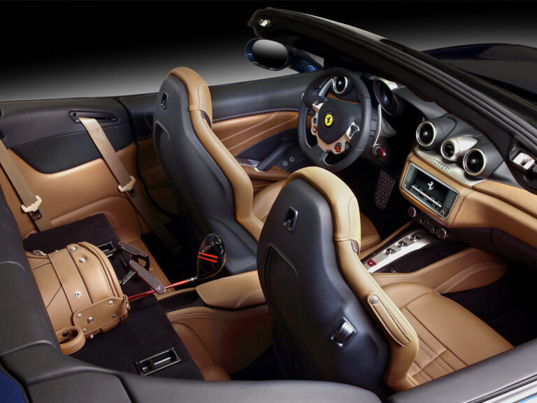 Wnętrze California T emanuje ciepłem i rzemiosłem, a jego projekt zrobiono jak najbardziej ergonomiczny, z ekskluzywnymi półanilionowymi skórzanymi wykończeniami. Przestrzeń w kabinie jest również elastyczna, a właściciele mogą maksymalnie wykorzystać jej dużą pojemność bagażnika, nawet przy opuszczonym dachu, dzięki komunikacji między bagażnikiem a tylnymi siedzeniami.