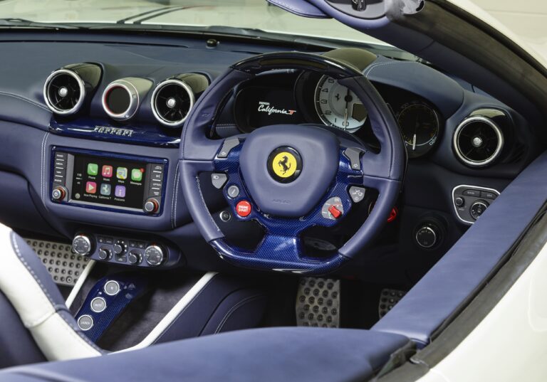 Interfejs człowiek-maszyna obejmuje kierownicę Ferrari z wbudowanymi kontrolkami, a Turbo Performance Engineer (TPE) zajmuje centralne miejsce pomiędzy dwoma nawiewami powietrza. To zaawansowane narzędzie z wyświetlaczem dotykowym i systemem przewijania dostarcza informacji na temat efektywnego wykorzystania nowego silnika. California T ma również nowy system infotainment z dużym, niezwykle intuicyjnym wyświetlaczem 6,5″ oraz możliwość korzystania zarówno z przycisków, jak i ekranów dotykowych.