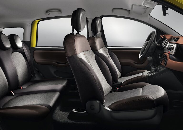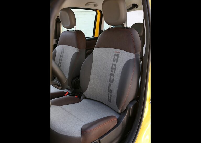 W środku, Panda Cross wyróżnia się również dopracowanym wnętrzem pasażerskim o dużej osobowości. Fotele wykonane są z materiału o płomiennym wzorze, z technicznym wyglądem, z brązowymi elementami ekologicznej skóry dla dopasowania do wykończenia paneli drzwiowych. Fotele przednie mają na oparciach napis Cross wykonany z wkładką poliuretanową.