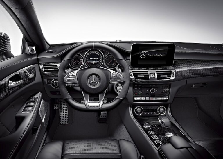 Wnętrze zmodernizowanego CLS63 AMG oferuje nową kierownicę sportową AMG, w tym łopatki zmiany biegów oraz metalowy dolny wkład w srebrnym chromie z oznaczeniem AMG. Wyraźnie podkreśla to wysoką jakość wnętrza. Również nowym elementem jest wolnostojący wyświetlacz kolorowy w jednostce sterującej o przekątnej ekranu 20,3 cm (8″), który definiuje nowoczesny wygląd deski rozdzielczej. Duży ekran jest częścią całkowicie nowej generacji multimediów.
