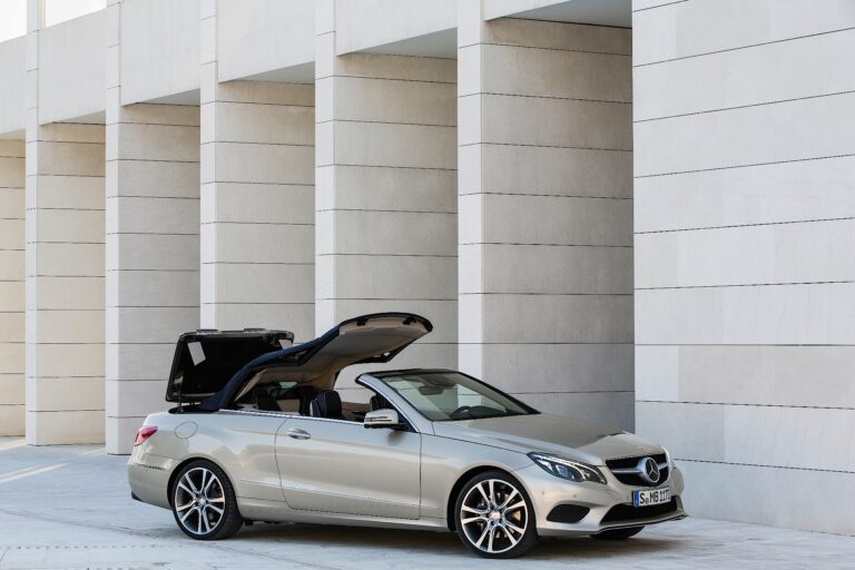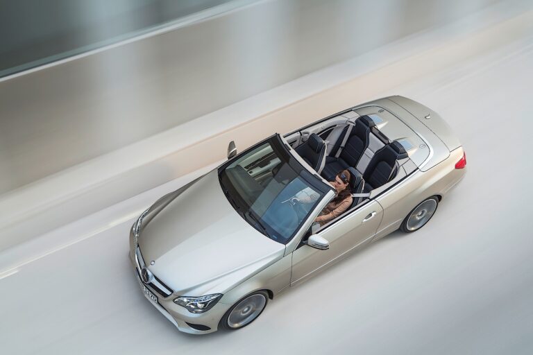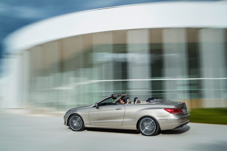 Dzięki akustycznemu dachi miękkiemu o szczególnie wysokiej izolacji, E-Class Cabriolet osiąga najniższy poziom hałasu w swojej klasie. Unikatowy dach akustyczny zapewnia, że nawet przy wysokich prędkościach we wnętrzu słychać tylko minimalny hałas wiatru. Mechanizm dachu miękkiego działa w pełni automatycznie za pomocą dźwigni w grupie sterującej kabrioletu lub pilota na podczerwień. Dach miękki, odpowiedni do automatycznych myjni, można otwierać i zamykać w ruchu przy prędkości do 40 km/h.