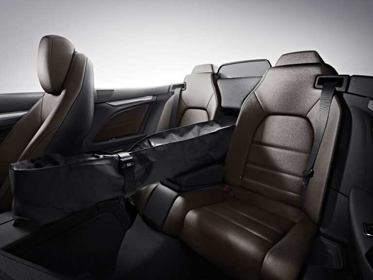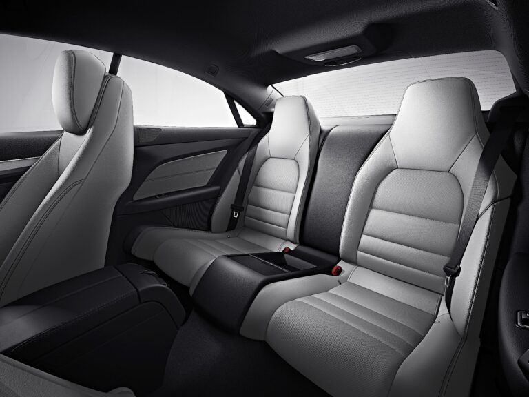 Pasażerowie z tyłu E-Class Coupé i Cabriolet również nie muszą iść na kompromis w zakresie komfortu. Dwa pełnowymiarowe indywidualne fotele z tyłu są bardzo wygodne i mają integralne zagłówki – które elektronicznie wysuwają się i chowają w Cabrioletcie, a także pełnią funkcję systemu ochrony przed przewróceniem. Gdy fotele są zajęte, zagłówki automatycznie się wysuwają. Oddzielne tylne fotele w Coupé mają składany design 1/3 : 2/3. Składany podłokietnik w Cabriolet może być zamówiony z opcjonalną funkcją ładowania przez środek.