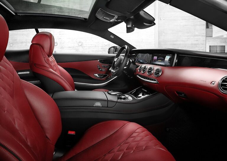 Otwierając drzwi, ukazuje się uwodzicielsko luksusowe wnętrze S63 AMG Coupé: deska rozdzielcza prawie płynnie przechodzi w drzwi w stylu wrap-around. Wysokiej jakości materiały i finezyjne wykończenie łączą się z sportowym, ekskluzywnym językiem designu. Nowo opracowane sportowe fotele AMG z elektryczną regulacją, funkcją pamięci i podgrzewaniem siedzeń oferują kierowcy i pasażerowi z przodu optymalne wsparcie boczne. Wysokiej jakości skóra nappa w designie V8 AMG z lamówką i oznaczeniami AMG na oparciach wszystkich czterech foteli oraz wytłoczone logo AMG na podłokietniku centralnym z przodu tworzą wspaniałą atmosferę na pokładzie.