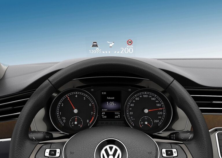 Nowy Passat będzie również pierwszym Volkswagenem, który ma wyświetlacz Head-Up. Projekcja ważnych informacji, takich jak prędkość pojazdu czy ikony nawigacyjne, bezpośrednio w polu widzenia kierowcy. Dzięki projekcji wyświetlacza Head-Up oczy kierowcy mogą pozostać skupione na drodze podczas odczytywania danych, takich jak prędkość pojazdu. Czas reakcji można również znacznie skrócić, wyświetlając komunikaty ostrzegawcze bezpośrednio w polu widzenia kierowcy. Wyświetlacz Head-Up Passata jest „rozwiązaniem złożonym”: dane są wyświetlane na rozsuwanej szklanej płycie przed szybą czołową. Twórcy osiągnęli tę samą jakość wyświetlania jak w dużo droższych systemach na szybie. Gdy nie jest używany, wyświetlacz można obniżyć w deskę rozdzielczą, aby go chronić, a otwór zamyka się równo z powierzchnią deski rozdzielczej. Dla oczu kierowcy, wyświetlane dane wydają się znajdować około dwóch metrów przed Passatem. Rezultaty: ponieważ kierowcy nie muszą tak często przesuwać wzroku między wskaźnikami a drogą, nie muszą ciągle ponownie skupiać wzroku, co zmniejsza zmęczenie oczu. Wyświetlacz Head-Up jest aktywowany za pomocą oddzielnego przycisku obok przłącznika świateł obrotowych. Kierowca może zdecydować – z menu systemu multimedialnego – które informacje mają być wyświetlane: aktualna prędkość, ograniczenie prędkości, instrukcje nawigacji, informacje o systemach pomocniczych lub ostrzeżenia.