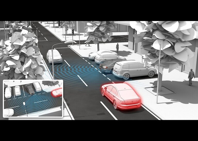 Park Assist umożliwia półautomatyczne parkowanie w miejscach parkingowych równolegle lub prostopadle do drogi. Może także wycofać samochód z równoległych miejsc parkingowych. W przypadku miejsc parkingowych prostopadłych system nie tylko pomaga w parkowaniu samochodu w tył, ale również półautomatycznie parkuje w kierunku przodu.