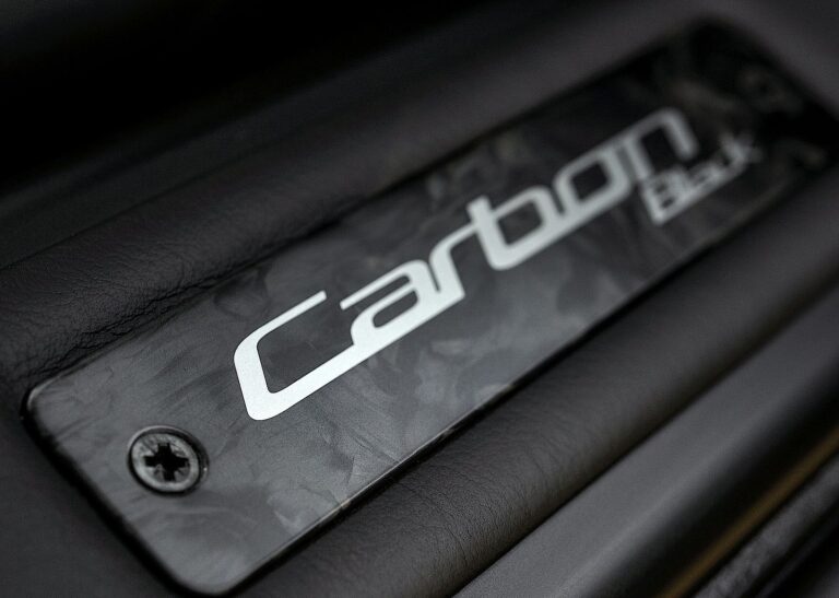 Wewnątrz dominuje mocny czarny motyw stylistyczny z wyborem kolorów akcentujących, zgodnych z kolorem zacisków, a także detale z włókna węglowego i nowe czarne elementy. Indywidualne plakietki progowe z logo Carbon podkreślają rzadkość tych samochodów.