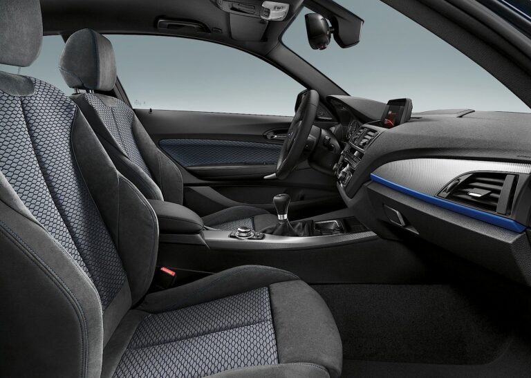 Cechy, które pomagają wprowadzić sportowe doznania do wnętrza BMW M135i, to panele progowe z napisem „M135i”, skórzana kierownica M, sportowe fotele oraz paski wykończeniowe wnętrza w specyficznym dla M designie, dźwignia zmiany biegów M lub rękojeść dźwigni wyboru, pełno skórzana rękojeść hamulca ręcznego, podsufitka w kolorze antracytowym BMW Individual, podparcie na kolana w stopniach kierowcy, podnóżek kierowcy M oraz pakiet oświetleniowy. „M135i” w wyświetlaczu zespołu wskaźników dostarcza dodatkowego, ekskluzywnego akcentu.