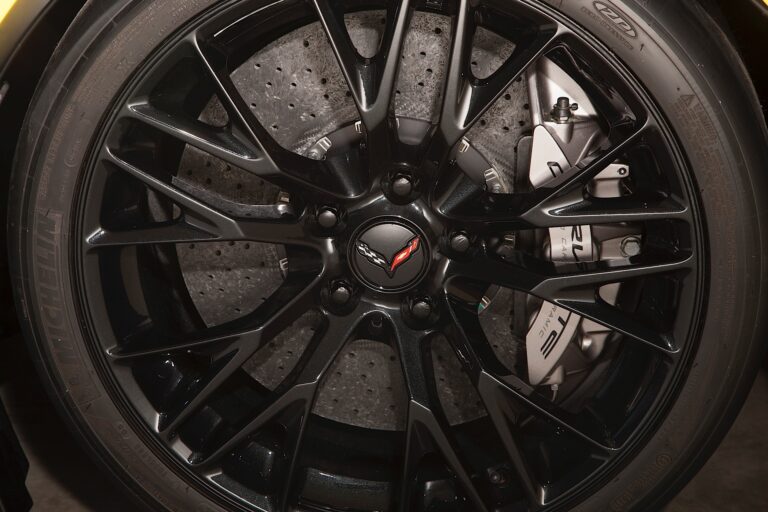 Pakiet Z07 dodaje większe, 15.5 x 1.4 cala (394 x 36 mm) z przodu i 15.3 x 1.3 cala (388 x 33 mm) karbonowo-ceramiczne tarcze hamulcowe dla stałej wydajności na każdym okrążeniu, a ich masa jest o 23 funty lżejsza od standardowych tarcz Z06.
