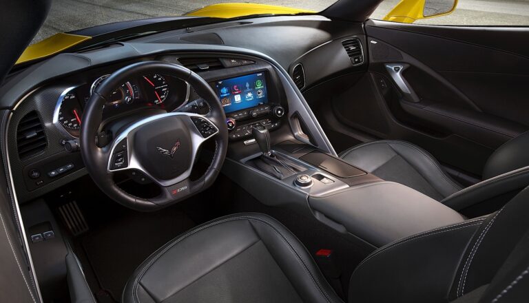 Wewnątrz, Corvette Z06 różni się od Corvetty Stingray unikalnymi schematami kolorów, które kładą nacisk na kierowcę, oraz unikalnym, płaskim kołem kierownicy.