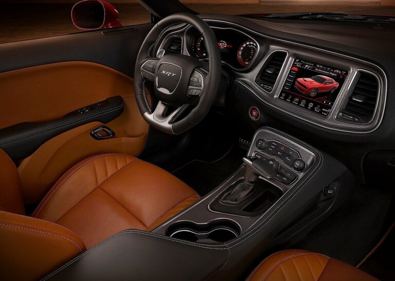 Całkowicie nowy panel instrumentów ma elegancko wykonane aluminiowe obramowanie, które nadaje ton wyświetlaczowi kierowcy. Aby uzyskać nowoczesny wygląd, innowacyjny 7-calowy wyświetlacz informacji dla kierowcy (DID), który można wybrać, jest umieszczony w centrum zestawu wskaźników i oferuje nieskończone możliwości personalizacji. Nowy ekran DID jest flankowany przez nowe analogowe wskaźniki prędkościomierza i obrotomierza, które oferują wygląd inspirowany dziedzictwem z wklęsłymi kształtami i igłą pokrytą osłoną, przypominającą wskaźniki „tic-toc-tach” z Challengera z 1971 roku. W przypadku Challengera SRT z silnikiem Hellcat wskaźniki i grafiki cyfrowe wykończone są w ciemnym odcieniu Radar Red, co czyni go jeszcze bardziej unikalnym.