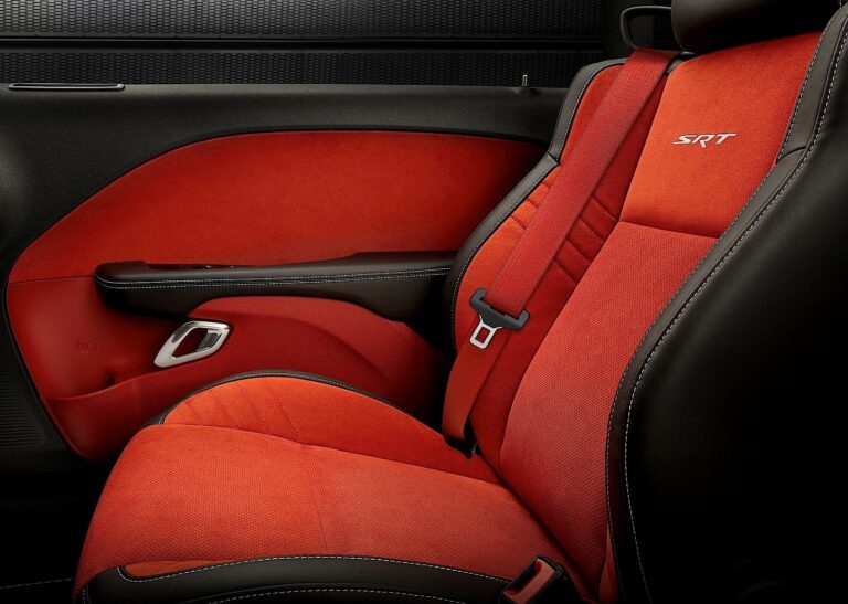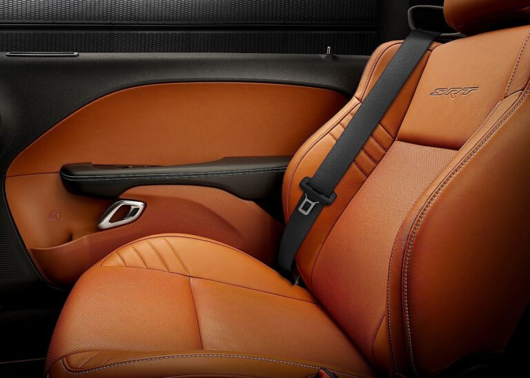 Challenger SRT oferuje fotele sportowe z dużymi bocznymi osłonami dla maksymalnego wsparcia bocznego w ostrych zakrętach. Fotele mogą być pokryte skórą Nappa/Alcantara z wyszywanymi logo SRT. Skóra premium Laguna, w kolorze sepia lub czarnym z tłoczonymi logo SRT, jest dostępna w ramach pakietu wyposażenia.