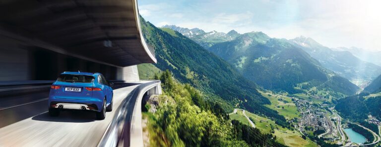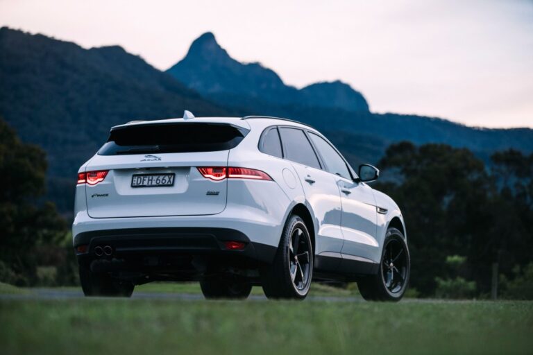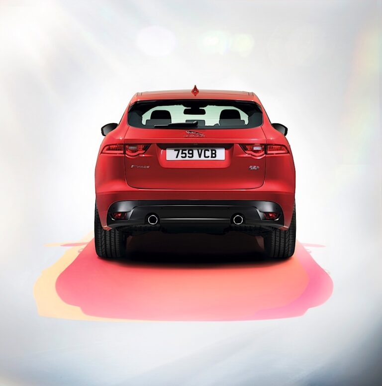 Wpływ F-Type jest natychmiast widoczny z tyłu, od grafiki świateł tylnych LED po muskularne tylne nadkola. Kąt tylnej szyby sprytnie ukrywa niezrównaną przestrzeń bagażową za nią. Wpływ F-Type sięga sylwetki nowego F-Pace, z jego smukłą linią dachu i krótkim wysuniętym przodem, odzwierciedlającą zwinne reakcje pojazdu. Wloty w błotnikach to kolejna charakterystyczna cecha designu Jaguara. Duże koła, zwłaszcza 22-calowe kute, wzmacniają celową sylwetkę.