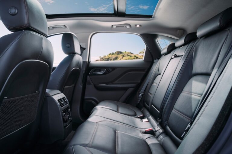 Dla Jaguara stworzenie wnętrza było łatwiejsze. Już znał przepis: luksusowe materiały, polerowane elementy metalowe oraz najlepsza skóra w ofercie. W tej kwestii uważnie słuchał ludzi z Land Rovera i brał pod uwagę ich doświadczenie. Niestety, doprowadziło to do wysokiego montażu siedzeń, co odbiegało od tego, czego szukał klient crossovera. Jednak to rozwiązanie rozwiązało problem z przestrzenią na nogi dla pasażerów z tyłu.