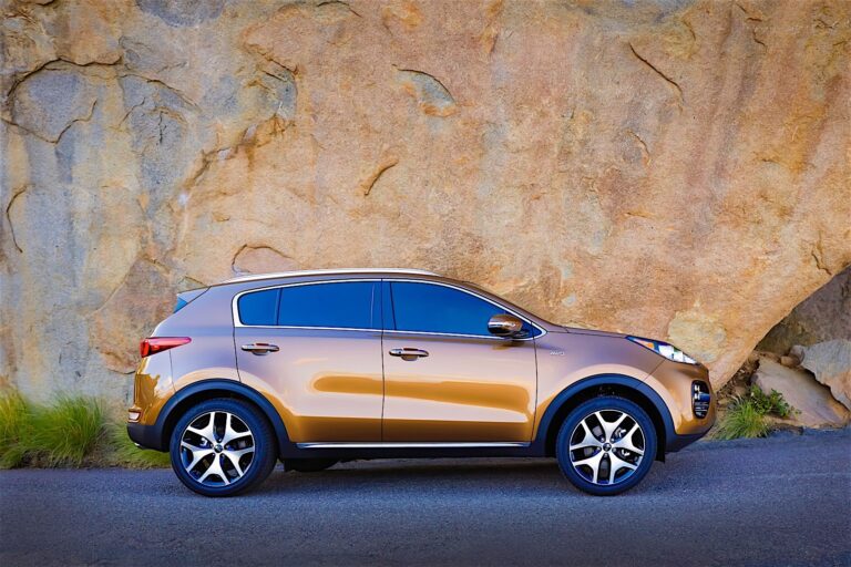 Całkowicie nowy Sportage zachowuje swój wysoce rozpoznawalny profil, z rozstawem osi dłuższym o 30 mm (teraz 2,670 mm), całkowitą długością pojazdu większą o 40 mm (do 4,480 mm) oraz dłuższym, bardziej aerodynamicznym tylnym spojlerem, co przynosi bardziej opływowy kształt. Z najwyższego punktu dachu (1,635 mm – bez zmian w stosunku do poprzedniego modelu) sylwetka Sportage delikatnie zwęża się w kierunku tyłu pojazdu, podczas gdy wyraźniejsze nadkola, ostre linie cech i gładkie powierzchnie nadają Sportage bardziej dynamiczny wygląd. Całościowy efekt inspirowany jest zdefiniowaną muskulaturą sprintera wychodzącego z bloków startowych. Dłuższe zwisy przednie (wydłużone o 20 mm) i krótsze zwisy tylne (skrót o 10 mm) przyczyniają się do bardziej opływowego profilu samochodu.