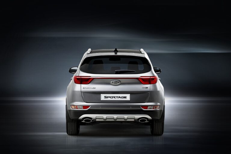 Z tyłu nowy Sportage charakteryzuje się bardziej poziomymi formami i wyraźnie zdefiniowanymi liniami cech, z gładkimi powierzchniami na klapie bagażnika, co podkreśla szerokość pojazdu i nadaje kompaktowemu SUV-owi bardziej stabilny wygląd. Inspirowane konceptem Kia Provo z 2013 roku, smukłe lampy tylne biegnące w poziomie są połączone paskiem przebiegającym przez szerokość tylnej części, podczas gdy kierunkowskazy i światła cofania są oddzielnie umiejscowione niżej, aby dodać więcej wizualnej wagi dolnej części. Kia Sportage GT Line ma również podwójne tłumiki wydechowe i metaliczną osłonę tylnego dyfuzora, co nadaje mu sportowy wygląd.